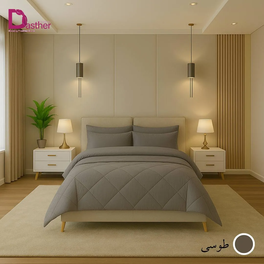 سرویس روتختی ساده دستر طوسی ترکیبی از سادگی، کیفیت و رنگ آرامشبخش است که تجربه خواب راحت و دلنشین را برای شما فراهم میکند. با انتخاب جنس مناسب، رعایت نکات نگهداری و هماهنگی با دکوراسیون، میتوانید از طول عمر بالای روتختی و زیبایی اتاق خواب خود لذت ببرید. این سرویس گزینهای مناسب برای خانه، هدیه دادن و ایجاد فضایی مدرن و آرامشبخش است و تجربه خواب باکیفیتی را برای شما به ارمغان میآورد.